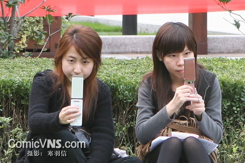 正在摆弄日款手机的MM们 CV通讯社记者 寒羽信摄