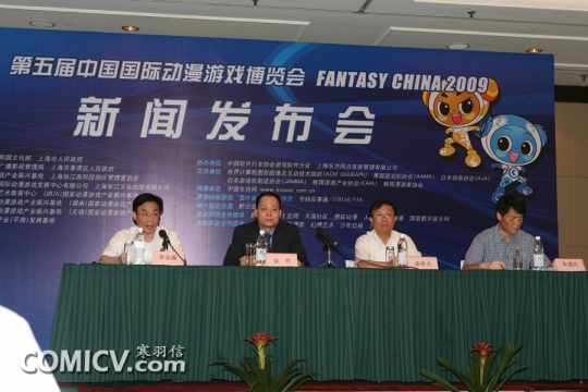 ComicV通讯社(6月30日)消息,第五届中国国际动漫游戏博览会召开新闻发布会,上海市文化广播影视管理局市场处处长李金鑫,上海市文化广播管理局巡视员张哲,国家动漫游戏产业振兴基地秘书长童祖光,副秘书长兼办公室主任朱建民等同志出席会议。