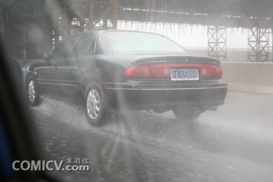 车辆行使中碾过积水处激起的水花 ComicV动漫情报网络新闻中心记者 寒羽信摄