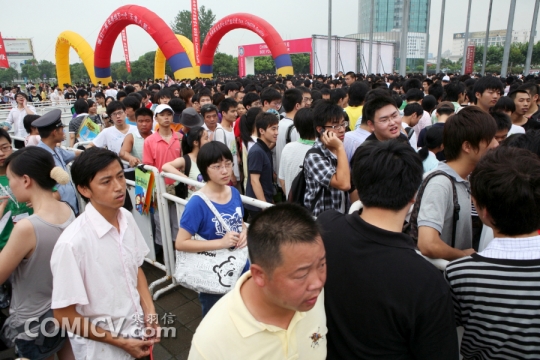 购票处的栏杆区域内被购票群众挤得几乎已无空隙 ComicV动漫情报网络新闻中心记者 寒羽信摄