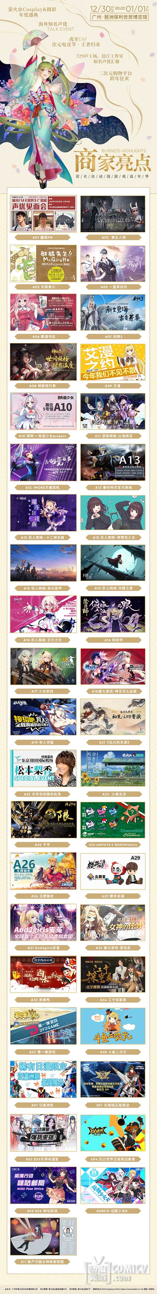喜欢漫画、小说、广播剧?就不要错过猫耳FM、天闻角川、樱漫书店、江宁探案录的展台!想现场体验游戏领取福利?网易游戏、盛大游戏、巨人网络、游族网络、西山居携诸多二次元游戏直参!更有剑网3,阴阳师和第五人格为你准备诸多限定活动!还想入手最新正版周边?《全职高手》,《凹凸世界》,《斩兽之刃》等动漫IP正版周边会场贩售!更有玄机科技官方商城和艾漫给你带来超多新品!想为你的偶像爱豆打call?Girls On Top偶像计划将为大家带来来自日本、香港以及广州本土的偶像女人气团的精彩演出。